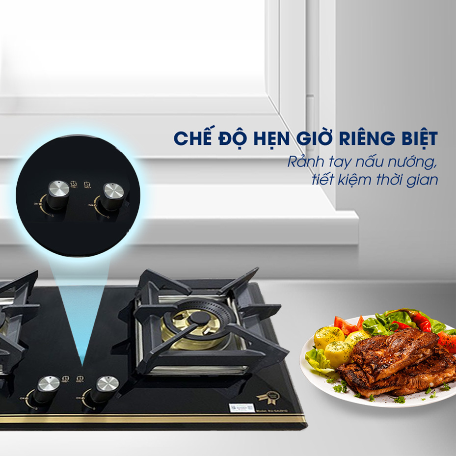 Bếp ga âm Eurosun được trang bị chức năng hẹn giờ độc lập cho từng lò nấu từ 0 – 180 phút, giúp người dùng có thể dễ dàng thiết lập thời gian đun nấu, bếp sẽ tư động ngắt khi hết thời gian đã được cài đặt mà không mất thời gian đợi khi kết thúc nấu món ăn.