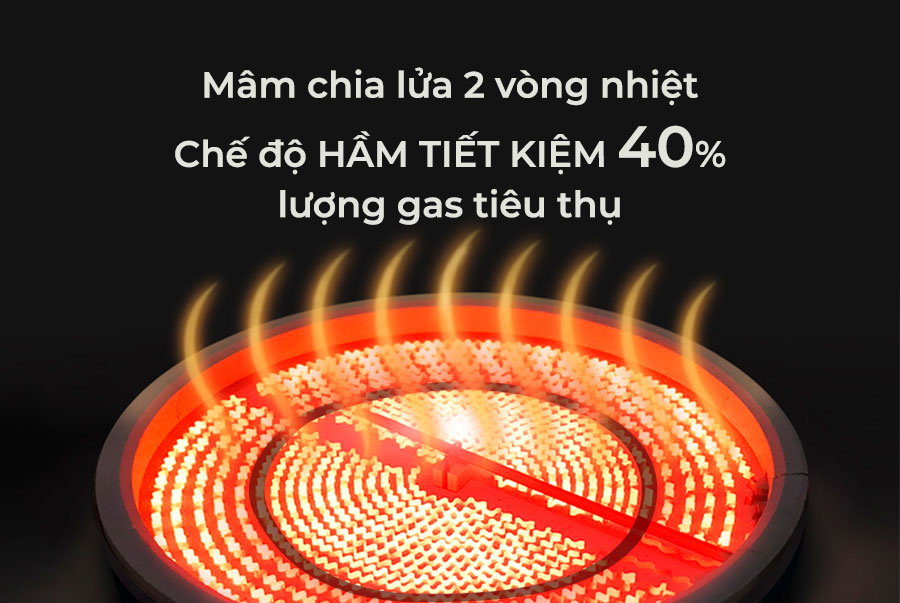 Chế độ hầm tiết kiệm gas với mâm chia lửa nhỏ giúp chúng ta dễ giàng kiểm soát nhiệt lượng đun nấu dành cho các món hầm hay súp,… các món cần lửa nhỏ nhiệt độ thấp đều, bạn chỉ cần điều chỉnh về mức lửa nhỏ là sẽ có một món hầm ngon như ý.