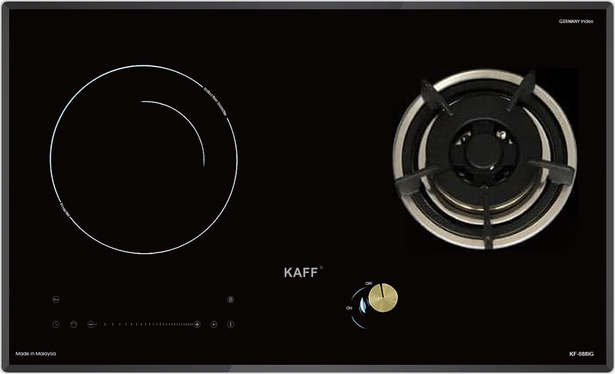 Bếp từ kết hợp gas Kaff KF-088IG là dòng sản phẩm được thiết kế với sự kết hợp giữa bếp gas và bếp từ cùng nhiều chức năng nấu nướng tiện lợi giúp người dùng có thể yên tâm sử dụng trong những trường hợp như mất điện hay hết gas. Bếp từ kết hợp gas Kaff KF-088IG trang bị mặt kính Crystal màu đen sang trọng có khả năng chịu lực và chịu nhiệt cao giúp người dùng yên tâm về mức độ an toàn của sản phẩm. Thân bếp từ kết hợp gas Kaff KF-088IG bằng thép không gỉ, với quạt tản nhiệt cùng các khe thoát nhiệt xung quanh, giúp bếp tản nhiệt nhanh chóng trong quá trình sử dụng.