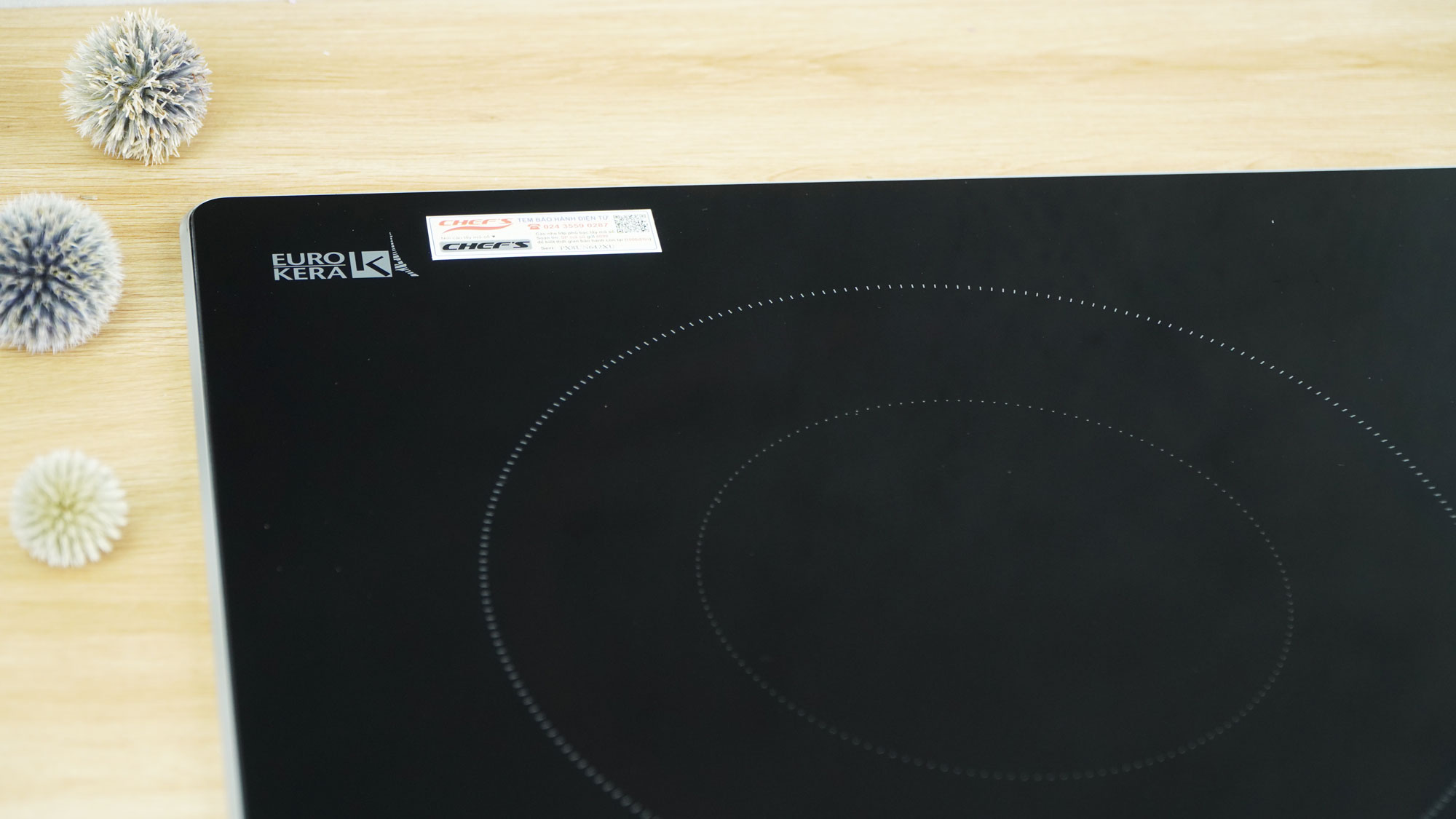 Mặt kính Ceramic – Schott Ceran vát cạnh (nhập khẩu nguyên tấm từ Đức) chịu nhiệt tối đa 1000 °C, chịu sốc nhiệt 800 °C, chịu lực tốt, bề mặt chống trầy xước, chống bám bẩn, vệ sinh đơn giản.