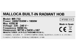 – Bếp hồng ngoại Malloca đến từ Tây Ban Nha cho chất lượng cao cấp đạt chuẩn Châu Âu.