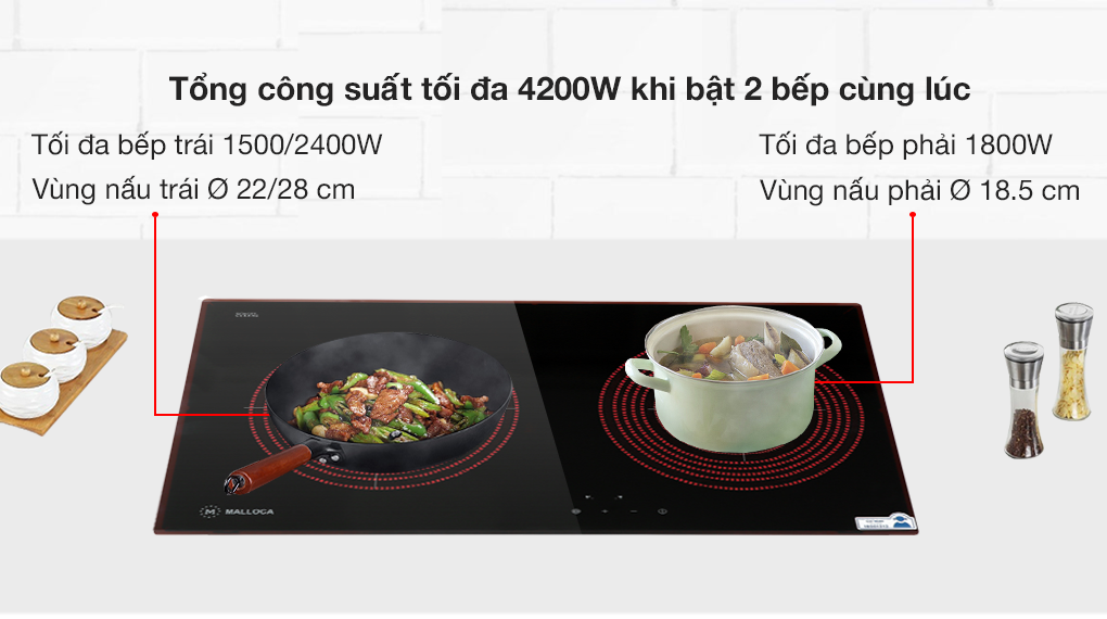 – Tổng công suất đạt 4200W, nấu ăn nhanh và tiết kiệm thời gian cho việc bếp núc.