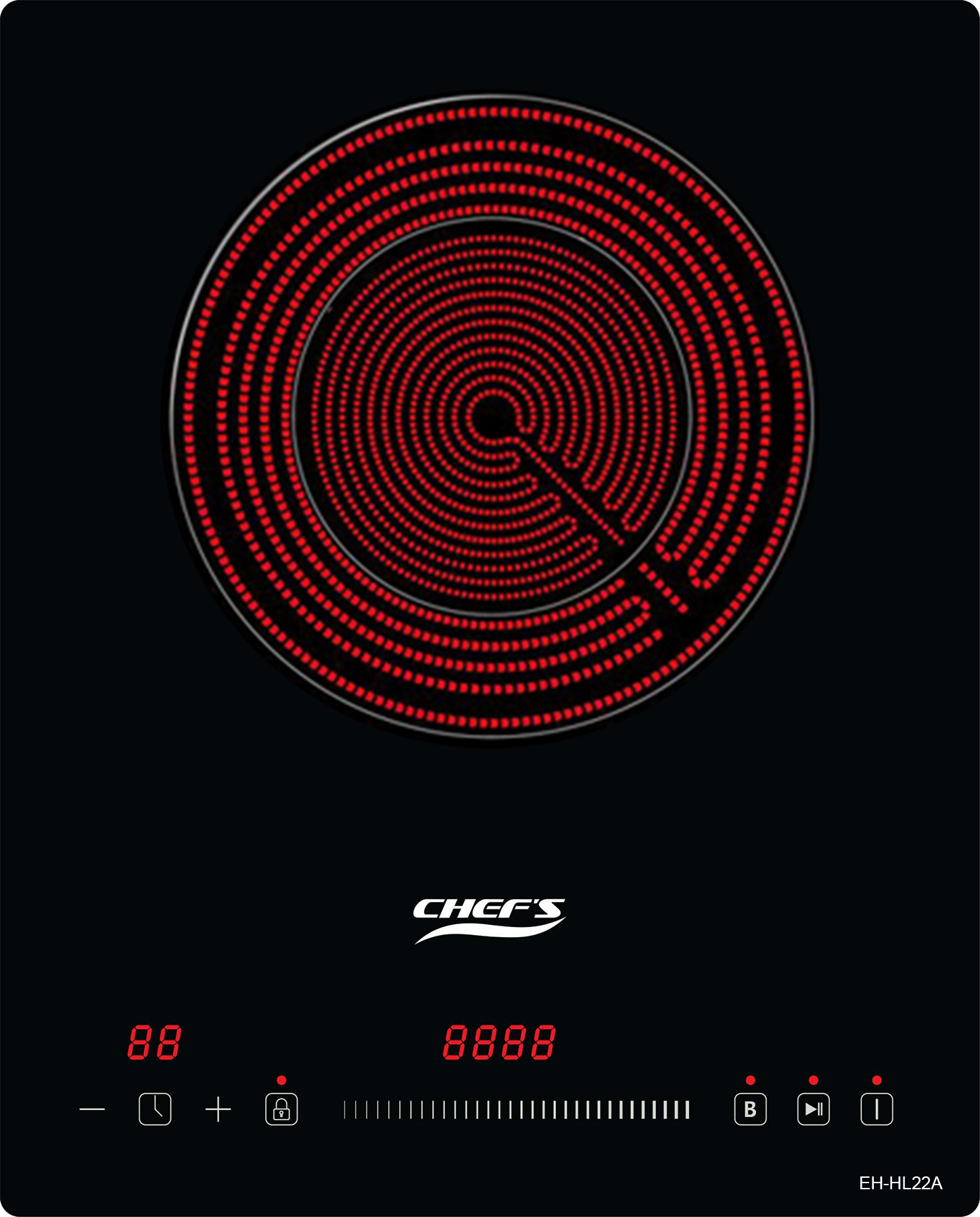 Bếp hồng ngoại đơn Chefs EH-HL22A có thể hẹn giờ nấu, đến 99 phút, người dùng có thể hẹn giờ nấu để có thể tranh thủ thời gian làm những công việc khác mà không phải canh chừng tắt bếp.