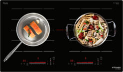 Đây được coi là thiết kế ưu việt nhất cho bếp từ khi người sử dụng có thể dễ dàng và linh hoạt điều khiển hoạt động của cả 2 vùng nấu độc lập cùng lúc. Bộ phím điều khiển được ứng dụng công nghệ cảm biến điện rung bọt biển siêu nhạy giúp người sử dụng dễ dàng thao tác và an toàn.