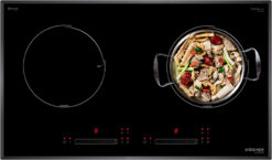 Đây được coi là thiết kế ưu việt nhất cho bếp từ khi người sử dụng có thể dễ dàng và linh hoạt điều khiển hoạt động của cả 2 vùng nấu độc lập cùng lúc. Bộ phím điều khiển được ứng dụng công nghệ cảm biến điện rung bọt biển siêu nhạy giúp người sử dụng dễ dàng thao tác và an toàn.