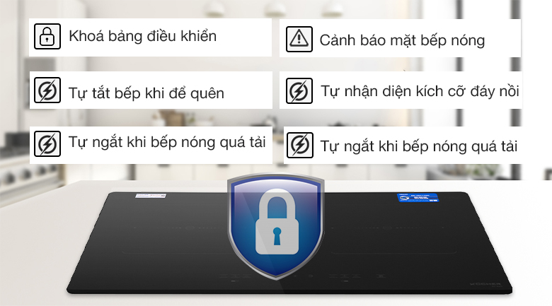 – Hệ thống tự ngắt khi bếp nóng quá tải Over heating shut off giúp đảm bảo tuổi thọ động cơ, giữ nguồn điện luôn ở mức an toàn.