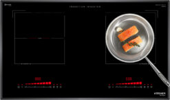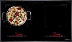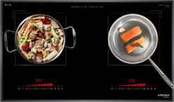Đây được coi là thiết kế ưu việt nhất cho bếp từ khi người sử dụng có thể dễ dàng và linh hoạt điều khiển hoạt động của cả 2 vùng nấu độc lập cùng lúc. Bộ phím điều khiển được ứng dụng công nghệ cảm biến điện rung bọt biển siêu nhạy giúp người sử dụng dễ dàng thao tác và an toàn.