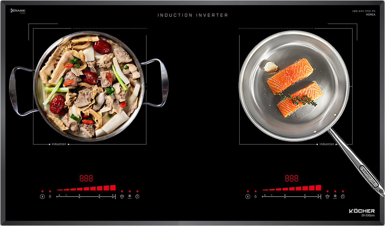 Với công nghệ Inverter được áp dụng trên bếp từ Kocher DI-330Pro có khả năng phản ứng thay đổi công suất theo điều khiển ngay tức thì, khi người dùng điều chỉnh tăng giảm nhiệt độ đun nấu, bếp điều chỉnh thay đổi tức thì về mức nhiệt độ mong muốn.