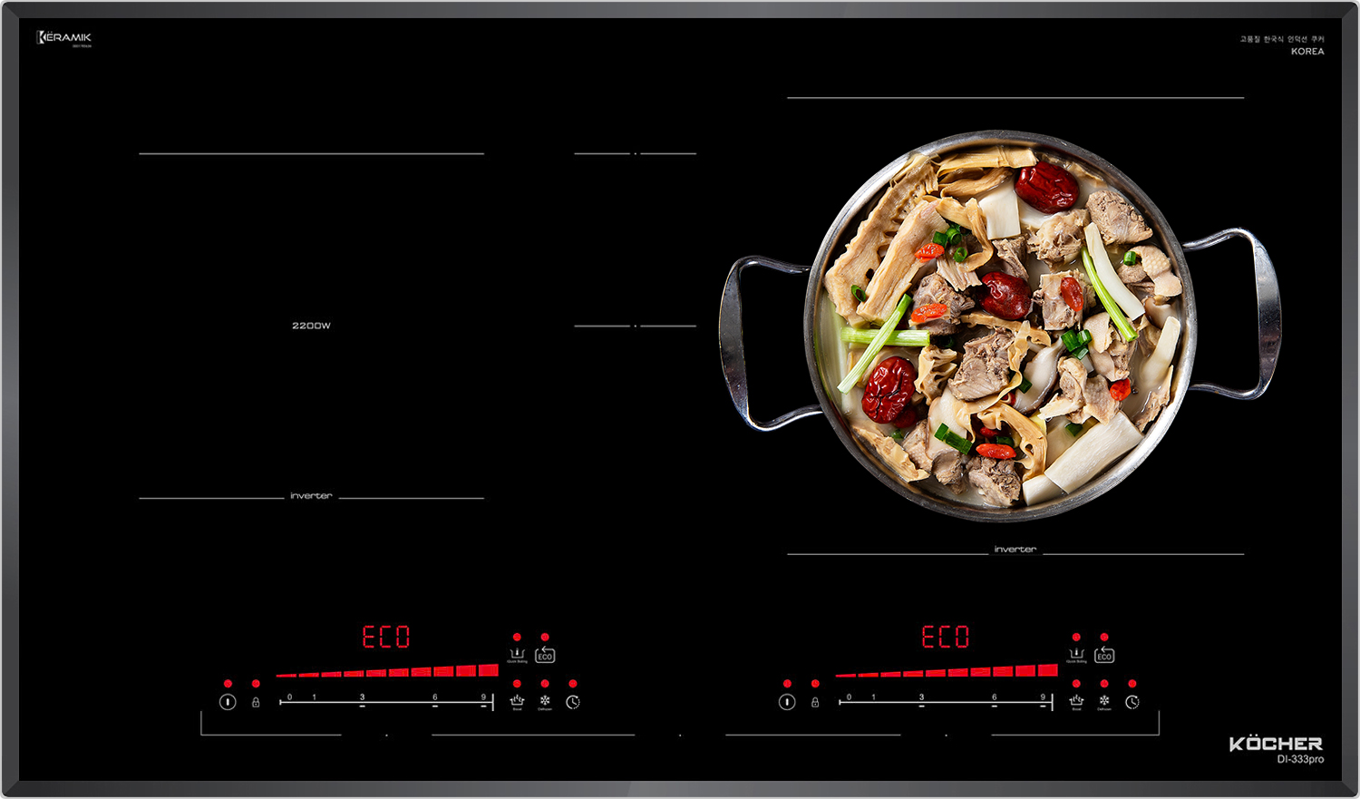 Bếp từ Kocher DI-333Pro sử dụng hệ thống điều khiển điện tử tiên tiến nhất giúp mang lại công suất tối đa với độ ổn định 100%.
