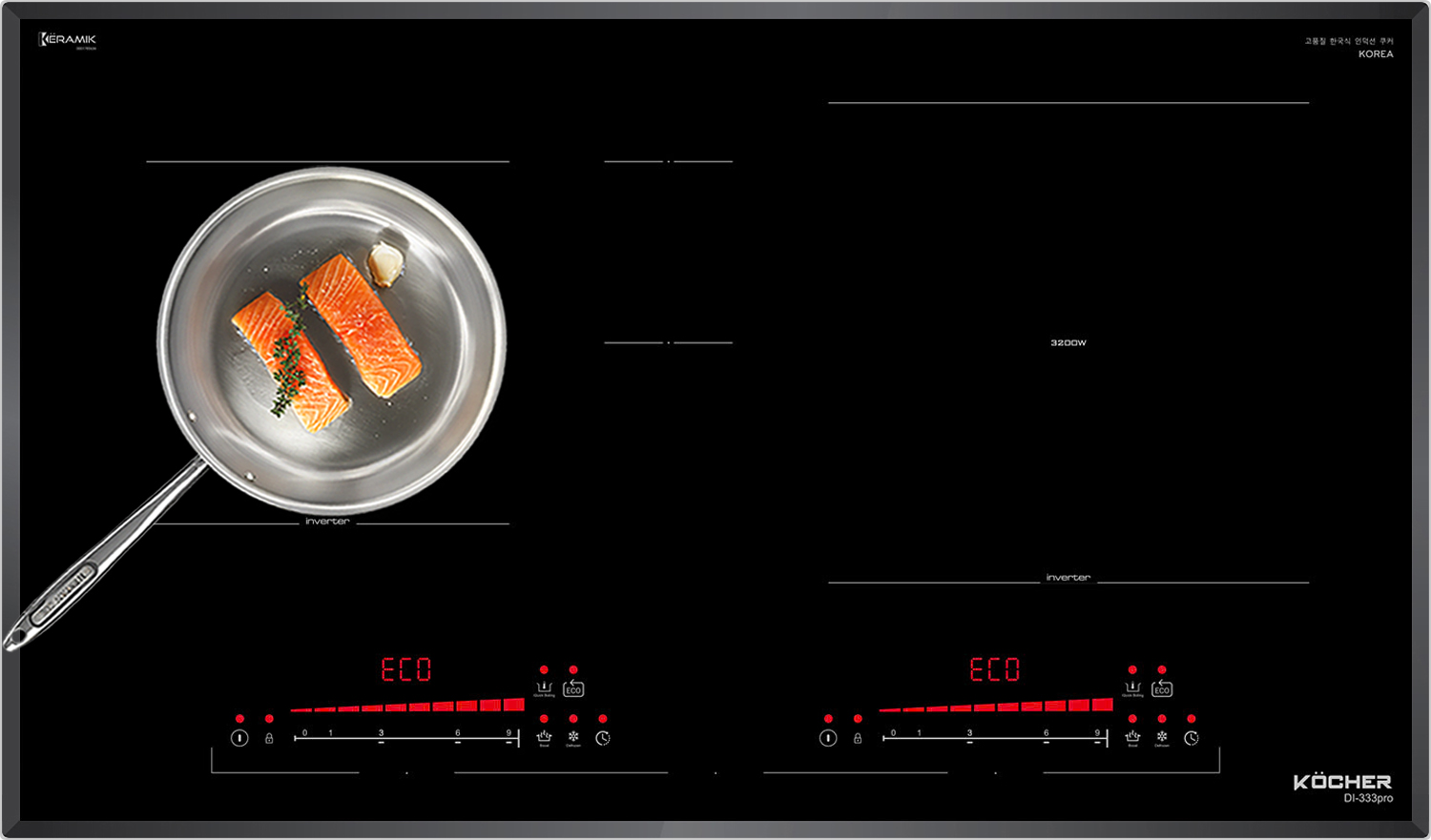 Với công nghệ Inverter được áp dụng trên bếp từ Kocher DI-333Pro có khả năng phản ứng thay đổi công suất theo điều khiển ngay tức thì, khi người dùng điều chỉnh tăng giảm nhiệt độ đun nấu, bếp điều chỉnh thay đổi tức thì về mức nhiệt độ mong muốn.