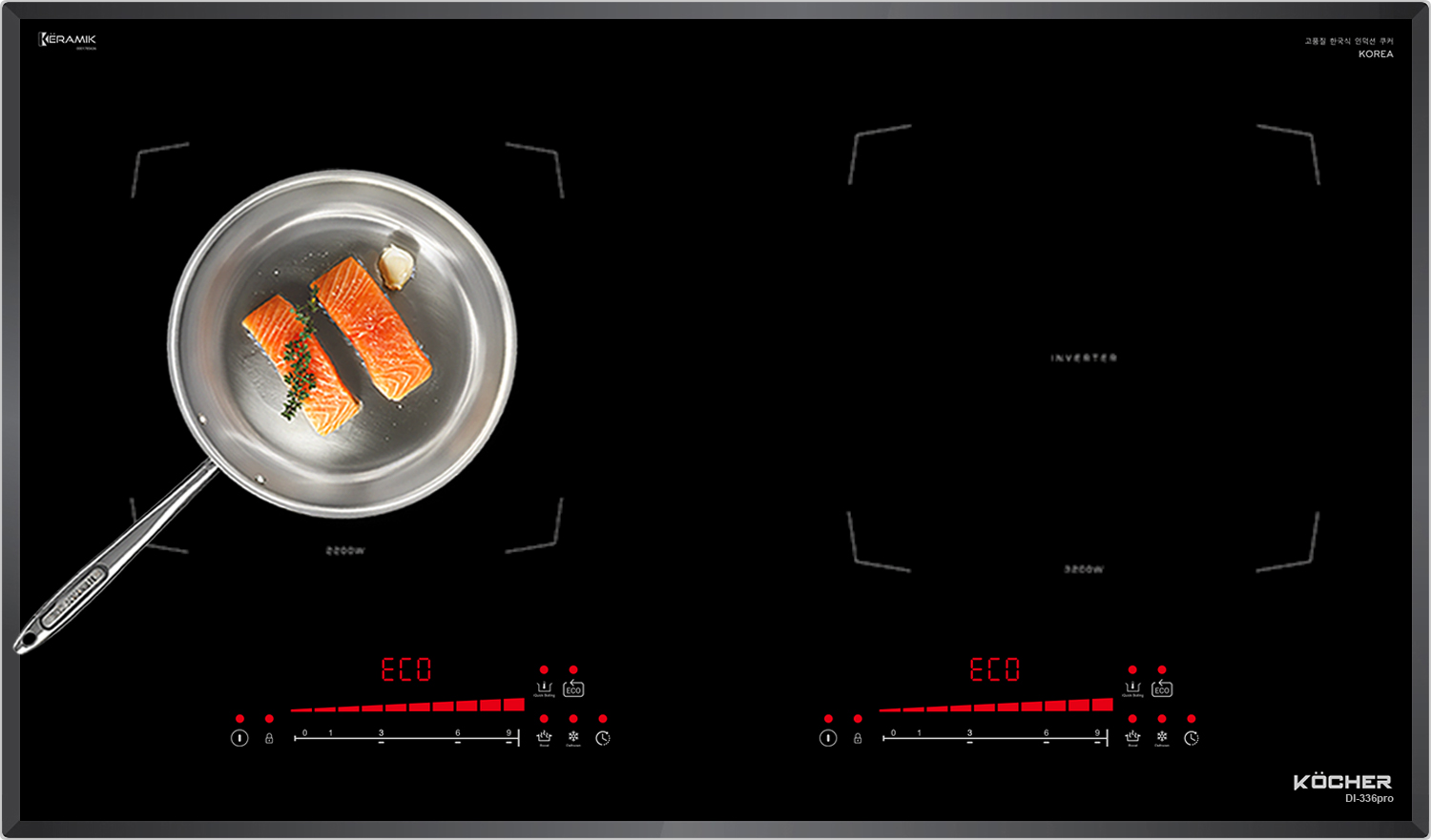Với công nghệ Inverter được áp dụng trên bếp từ Kocher DI-336Pro có khả năng phản ứng thay đổi công suất theo điều khiển ngay tức thì, khi người dùng điều chỉnh tăng giảm nhiệt độ đun nấu, bếp điều chỉnh thay đổi tức thì về mức nhiệt độ mong muốn.