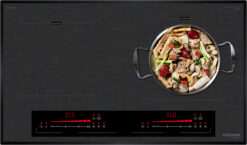 Đây được coi là thiết kế ưu việt nhất cho bếp từ khi người sử dụng có thể dễ dàng và linh hoạt điều khiển hoạt động của cả 2 vùng nấu độc lập cùng lúc. Bộ phím điều khiển được ứng dụng công nghệ cảm biến điện rung bọt biển siêu nhạy giúp người sử dụng dễ dàng thao tác và an toàn.