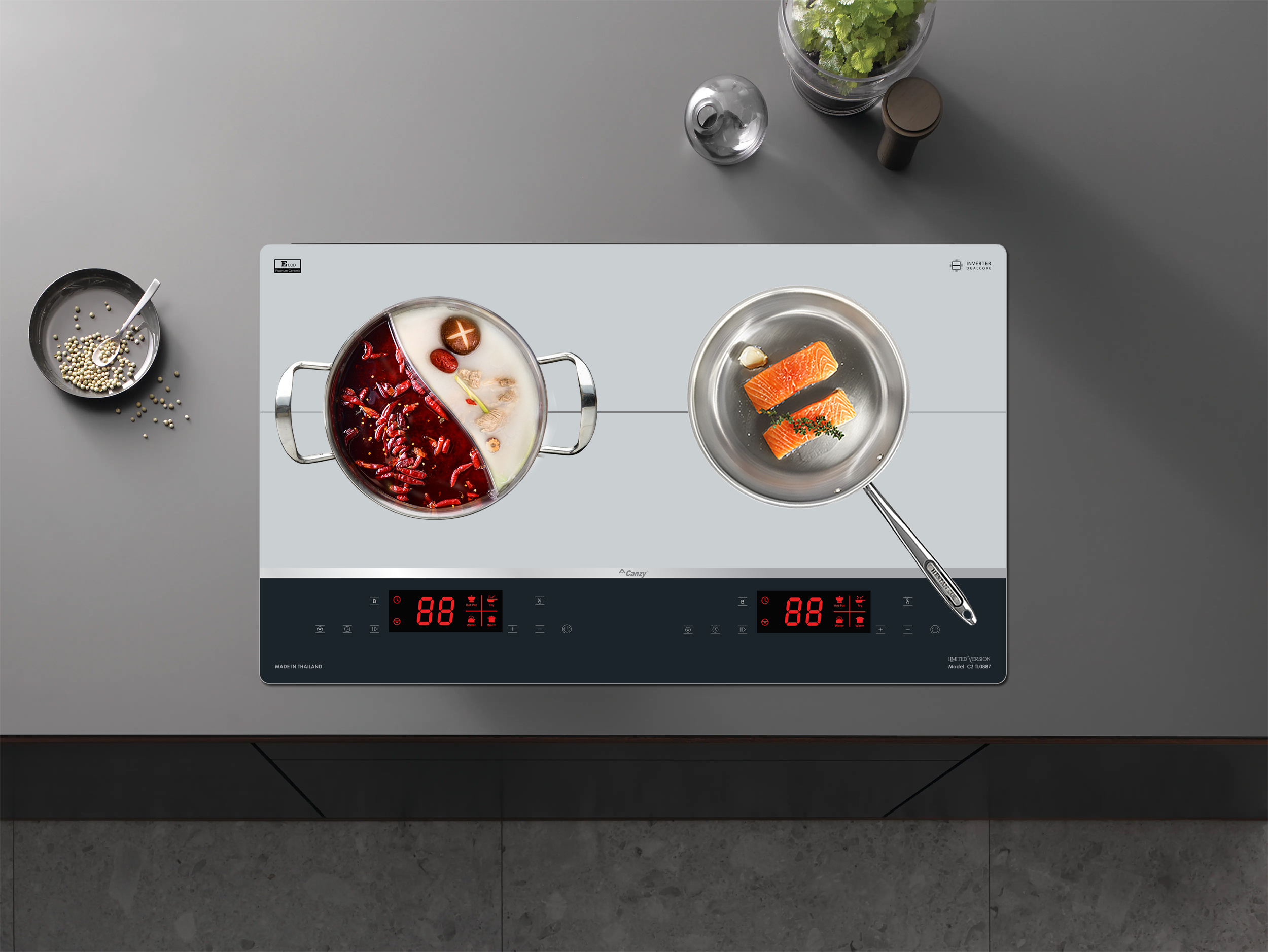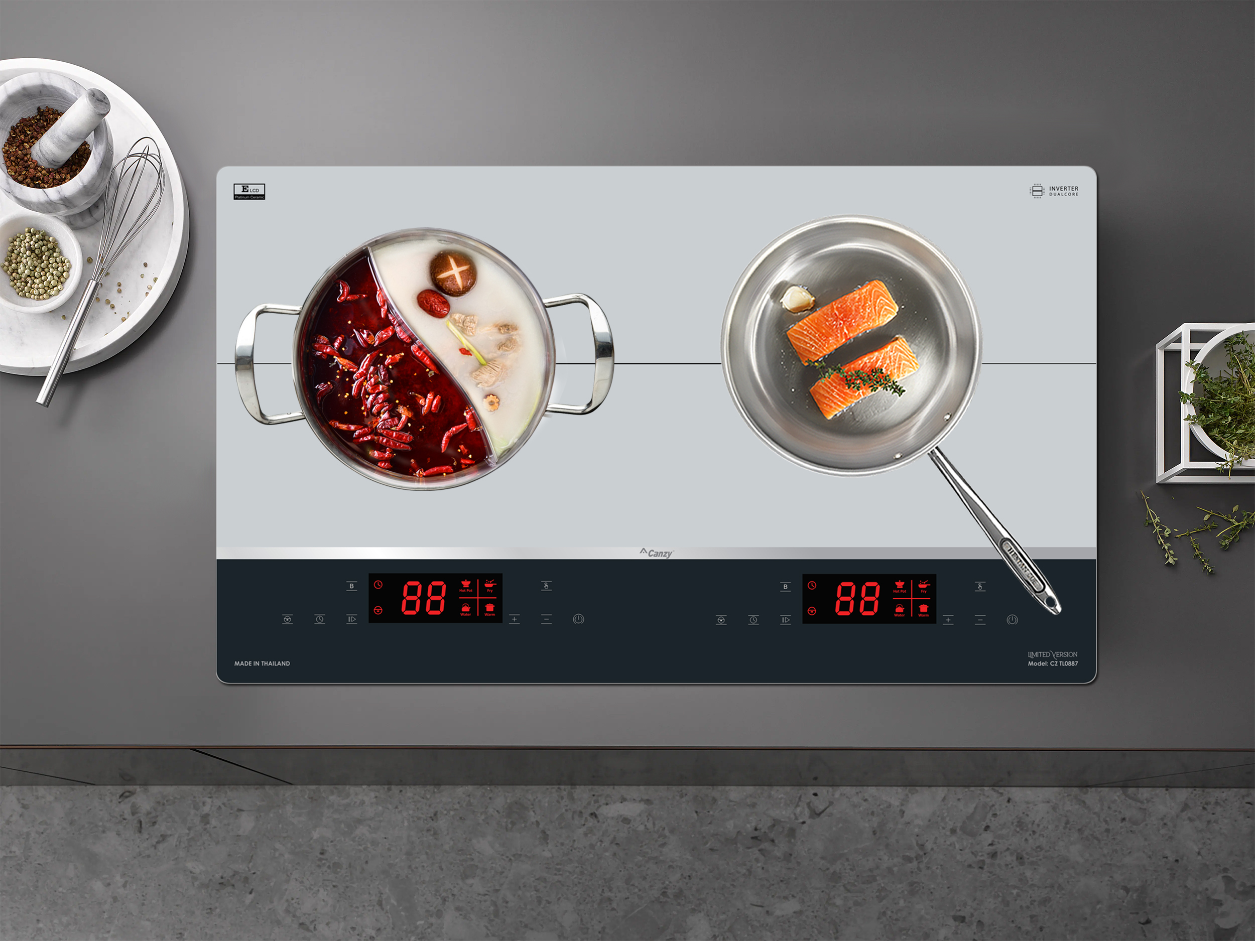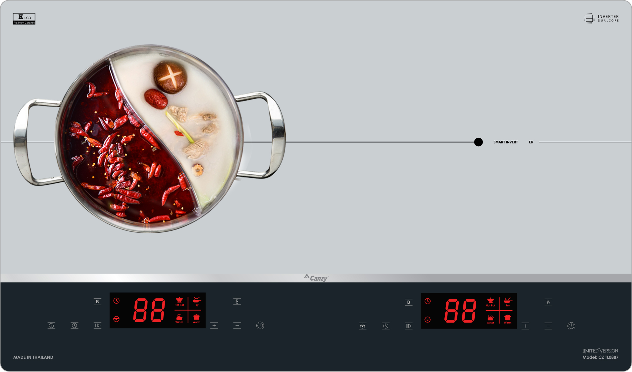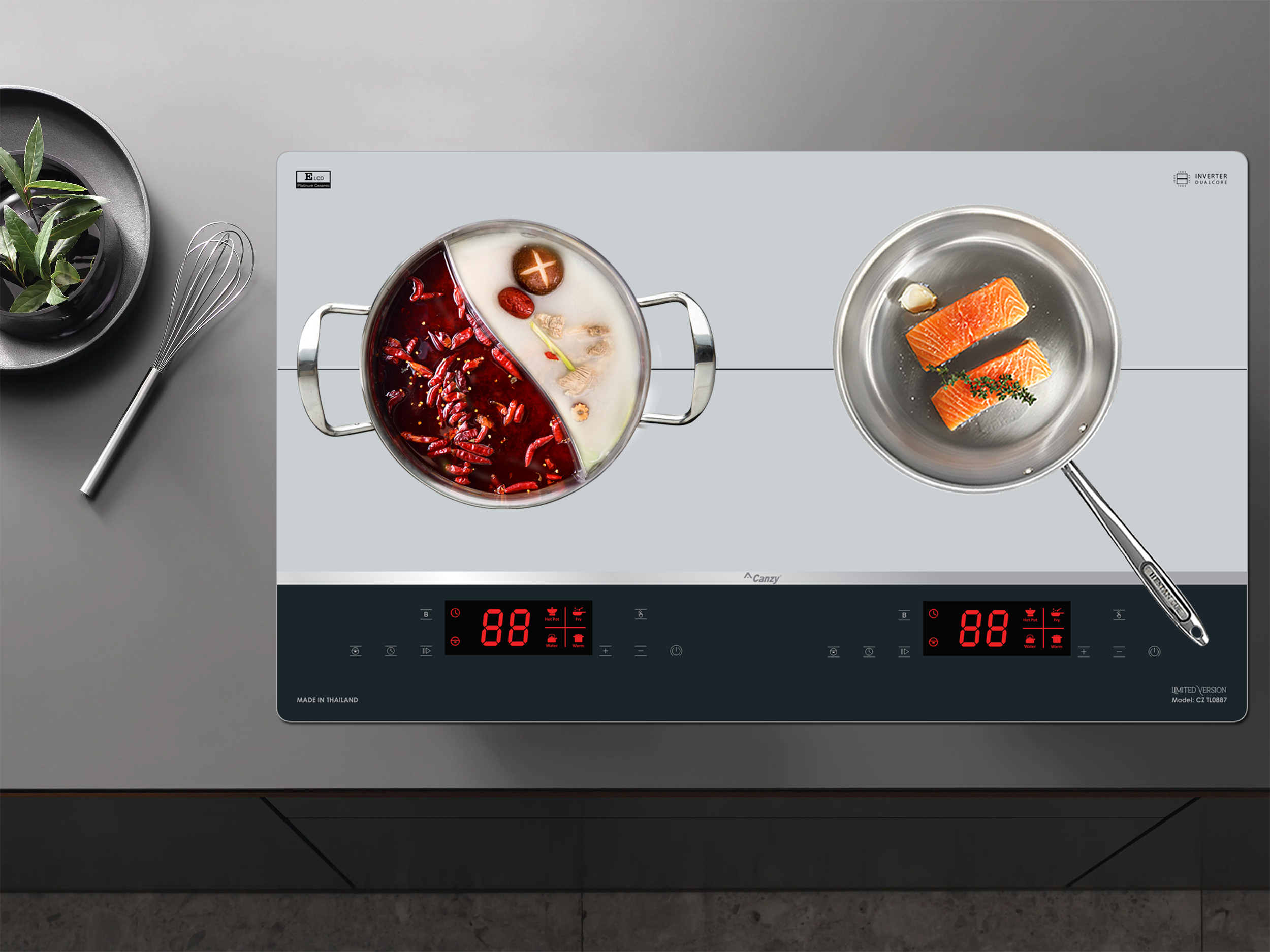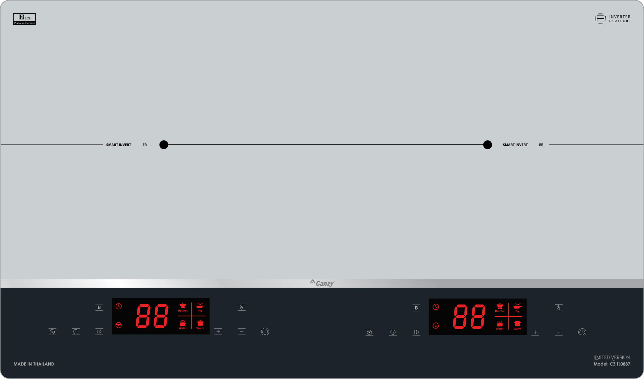 Bếp từ Canzy CZ-TL0887 được tích hợp chức năng tự nhận diện vùng nấu, khi ta đặt nồi lên 1 trong 2 vùng nấu sau đó ấn nút khởi động bếp sau thời gian 1-2 giây bếp sẽ tự động tìm vùng nấu đã có nồi, ta chỉ việc điều chỉnh mức công suất to nhỏ theo ý muốn mà không phải thao tác chọn vùng nấu như bếp thông thường. Công nghệ Inverter được áp dụng trên bếp từ Canzy CZ-TL0887 có khả năng phản ứng thay đổi công suất theo điều khiển ngay tức thì, khi người dùng điều chỉnh tăng giảm nhiệt độ đun nấu, bếp điều chỉnh thay đổi tức thì về mức nhiệt độ mong muốn.