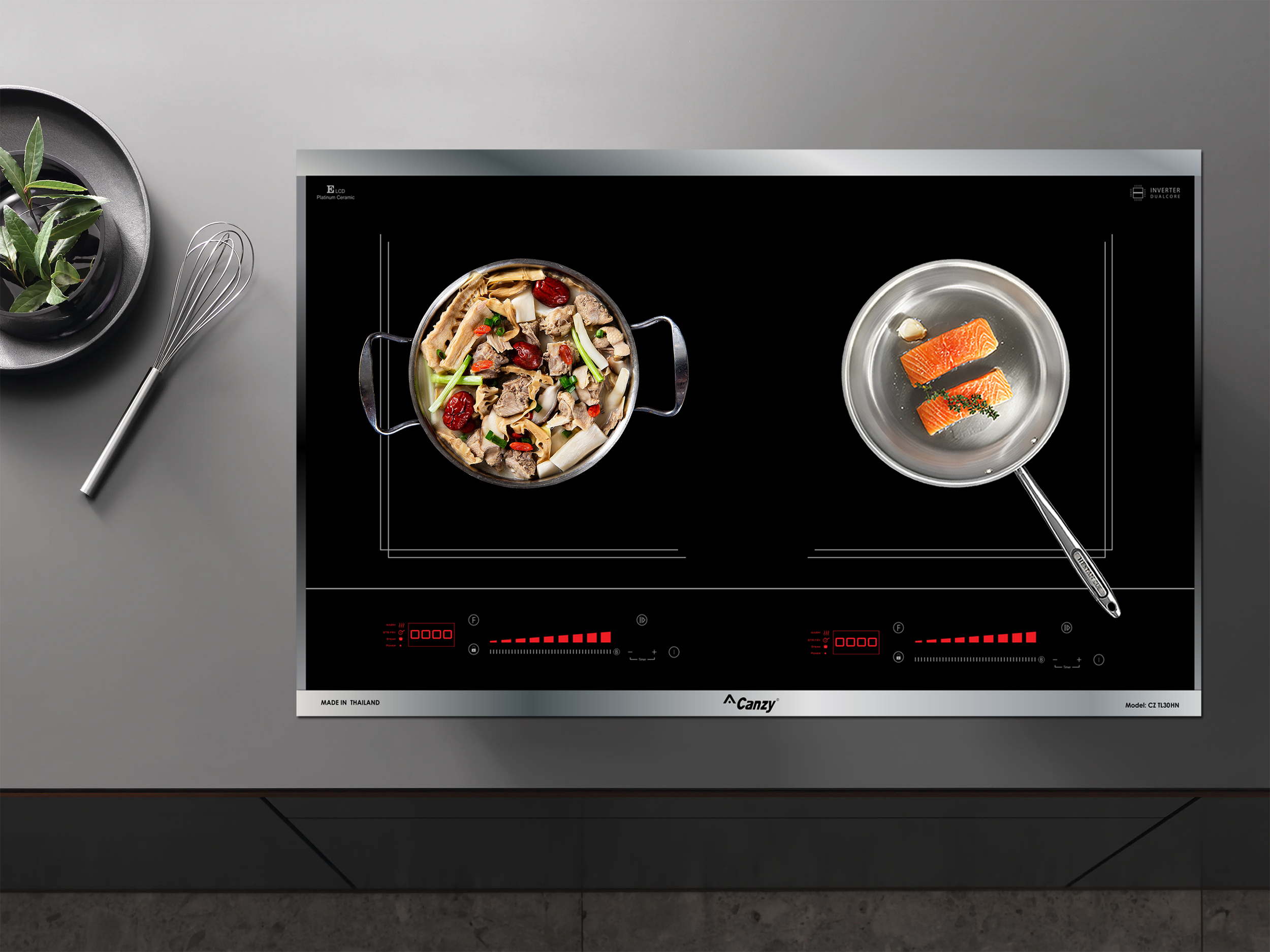 Bếp từ Canzy CZ-TL30HN được tích hợp chức năng tự nhận diện vùng nấu, khi ta đặt nồi lên 1 trong 2 vùng nấu sau đó ấn nút khởi động bếp sau thời gian 1-2 giây bếp sẽ tự động tìm vùng nấu đã có nồi, ta chỉ việc điều chỉnh mức công suất to nhỏ theo ý muốn mà không phải thao tác chọn vùng nấu như bếp thông thường. Công nghệ Inverter được áp dụng trên bếp từ Canzy CZ-TL30HN có khả năng phản ứng thay đổi công suất theo điều khiển ngay tức thì, khi người dùng điều chỉnh tăng giảm nhiệt độ đun nấu, bếp điều chỉnh thay đổi tức thì về mức nhiệt độ mong muốn.