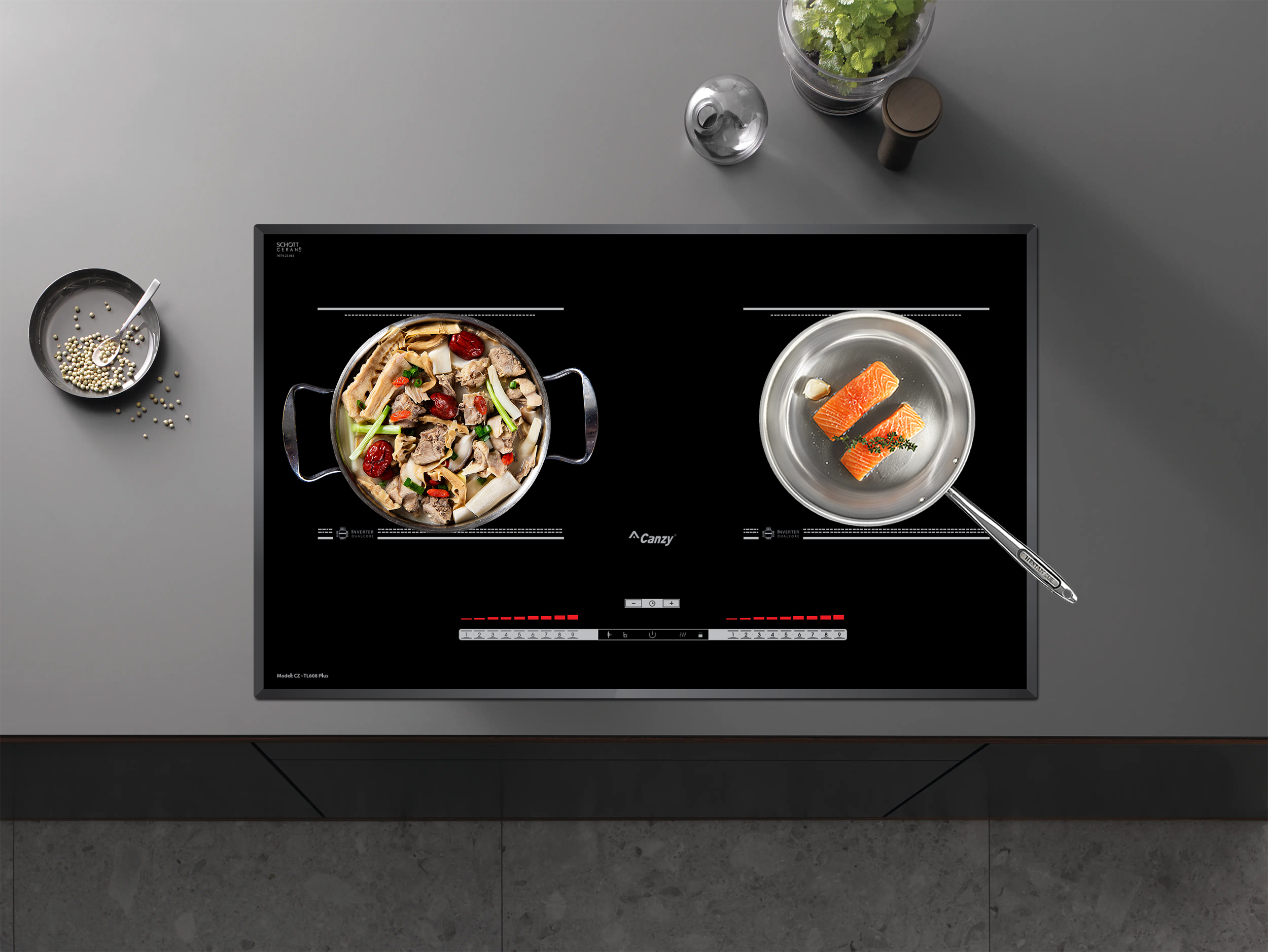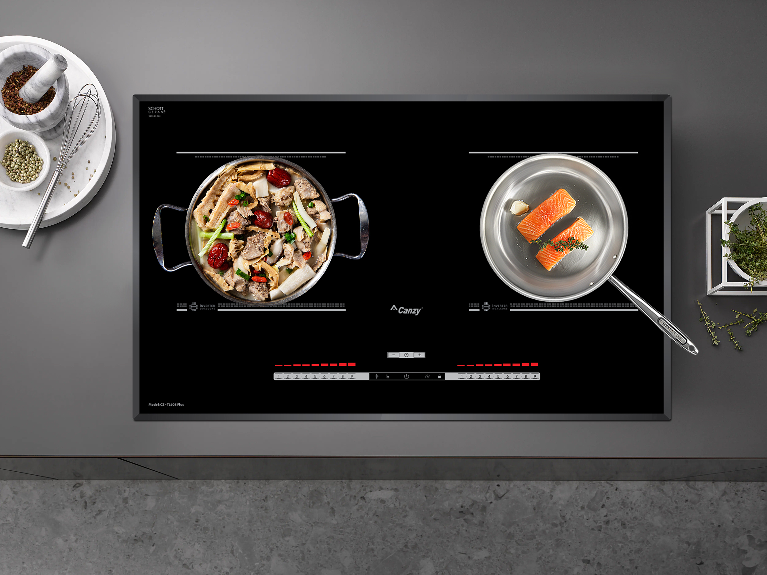 Bếp từ Canzy CZ-TL608 Plus sử dụng bảng điều khiển cảm ứng dạng trượt Slider Control hiện đại với 9 cấp độ công suất nhiệt độ khác nhau, điều khiển dễ dàng bằng một ngón tay, mọi chương trình nấu đều được hiển thị qua đèn Led sắc nét để bạn điều chỉnh cho phù hợp với các món ăn. Bếp còn được trang bị thêm các chức năng nấu thông minh là tính năng tạm dừng và hâm nóng.