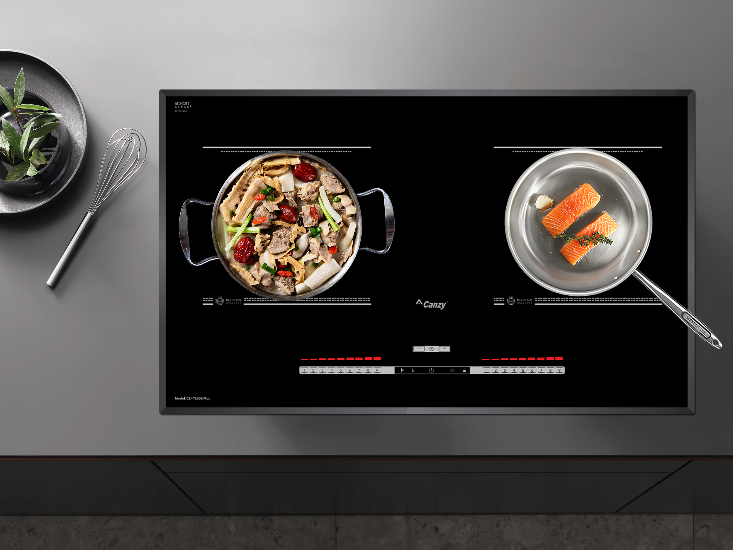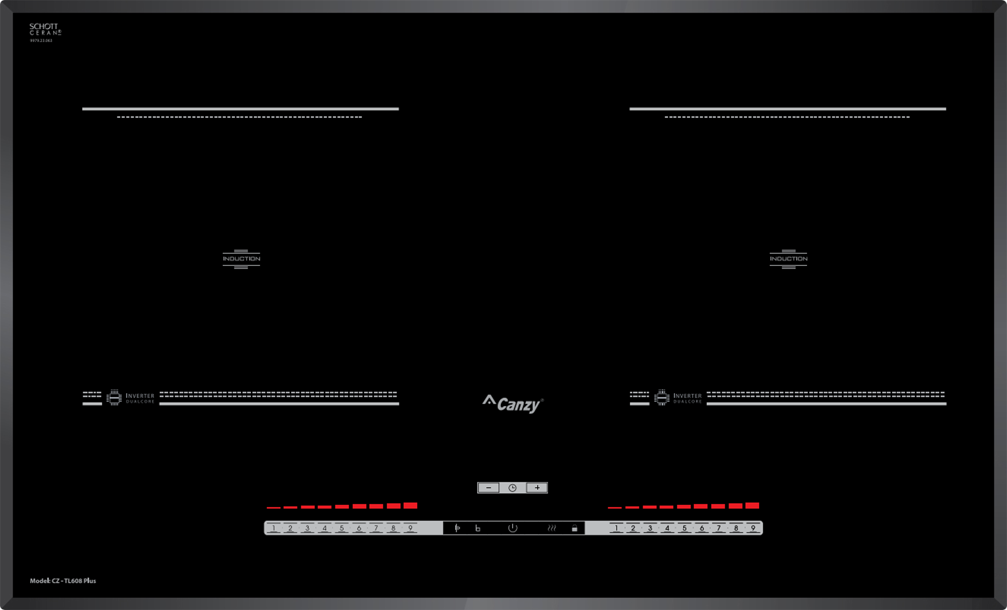 Bếp từ Canzy CZ-TL608 Plus được tích hợp chức năng tự nhận diện vùng nấu, khi ta đặt nồi lên 1 trong 2 vùng nấu sau đó ấn nút khởi động bếp sau thời gian 1-2 giây bếp sẽ tự động tìm vùng nấu đã có nồi, ta chỉ việc điều chỉnh mức công suất to nhỏ theo ý muốn mà không phải thao tác chọn vùng nấu như bếp thông thường. Công nghệ Inverter được áp dụng trên bếp từ Canzy CZ-TL608 Plus có khả năng phản ứng thay đổi công suất theo điều khiển ngay tức thì, khi người dùng điều chỉnh tăng giảm nhiệt độ đun nấu, bếp điều chỉnh thay đổi tức thì về mức nhiệt độ mong muốn.