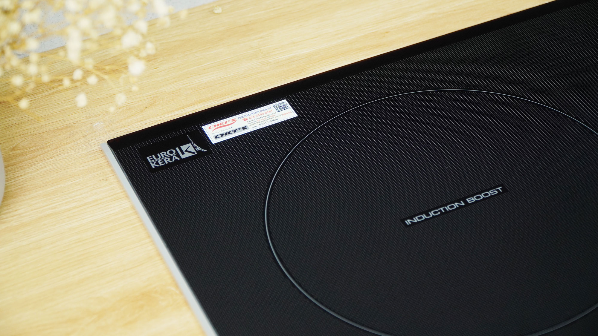 Bếp từ đôi Chef’s có mặt kính Ceramic – EuroKera (Pháp) liền nguyên khối, chịu lực, chịu nhiệt cao dưới 1000 độ C, chống trầy xước tốt, được mài vát cạnh hết sức tinh tế, đạt độ thẩm mỹ cao.