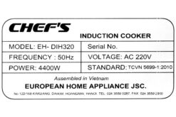 Bếp từ Chef’s sản xuất tại Đức, lắp ráp tại Việt Nam đảm bảo uy tín về mẫu mã, chất lượng