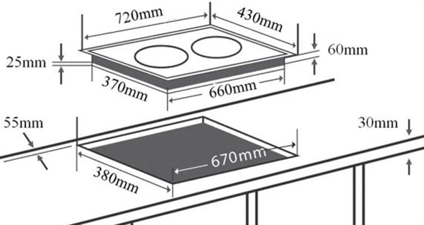 Bếp từ sử dụng điện nối qua aptomat. Kích thước ngang – dọc – sâu tương ứng 72 – 43 – 6 cm phù hợp lắp đặt cho các gian bếp không bị giới hạn về chiều ngang như nhà ở, chung cư,…