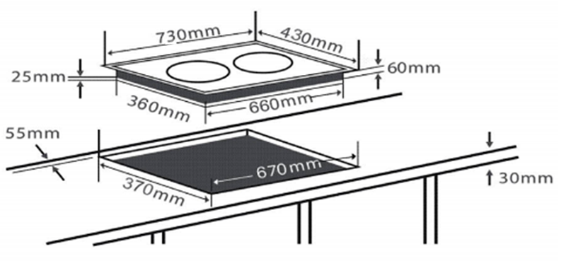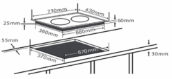 – Cảnh báo nhiệt dư vùng nấu: hiển thị chữ H trên bảng điều khiển (khi nhiệt độ từ 65°C trở lên và tắt khi nhiệt độ về dưới 60°C), tránh người dùng tiếp xúc gây nóng bỏng.