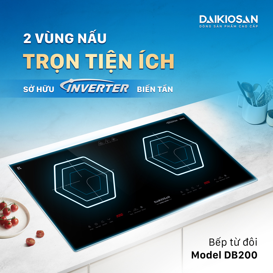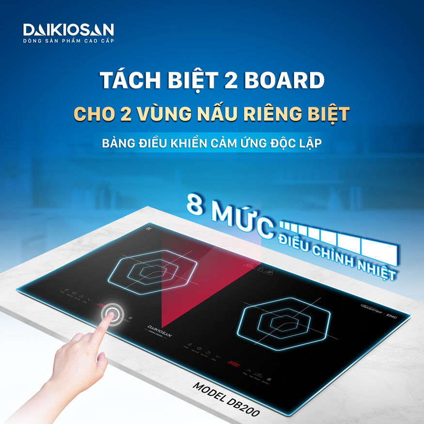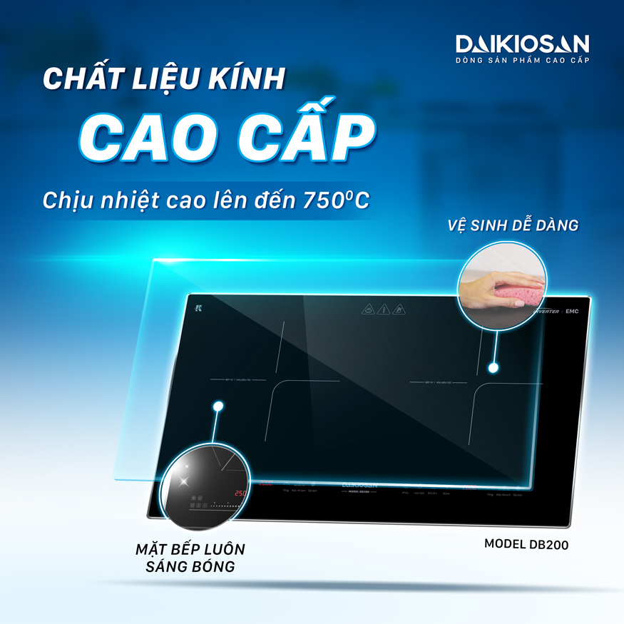 Mặt bếp từ đôi Daikiosan DB200 đẳng cấp sang trọng – Chi tiết bền bỉ chịu nhiệt cao