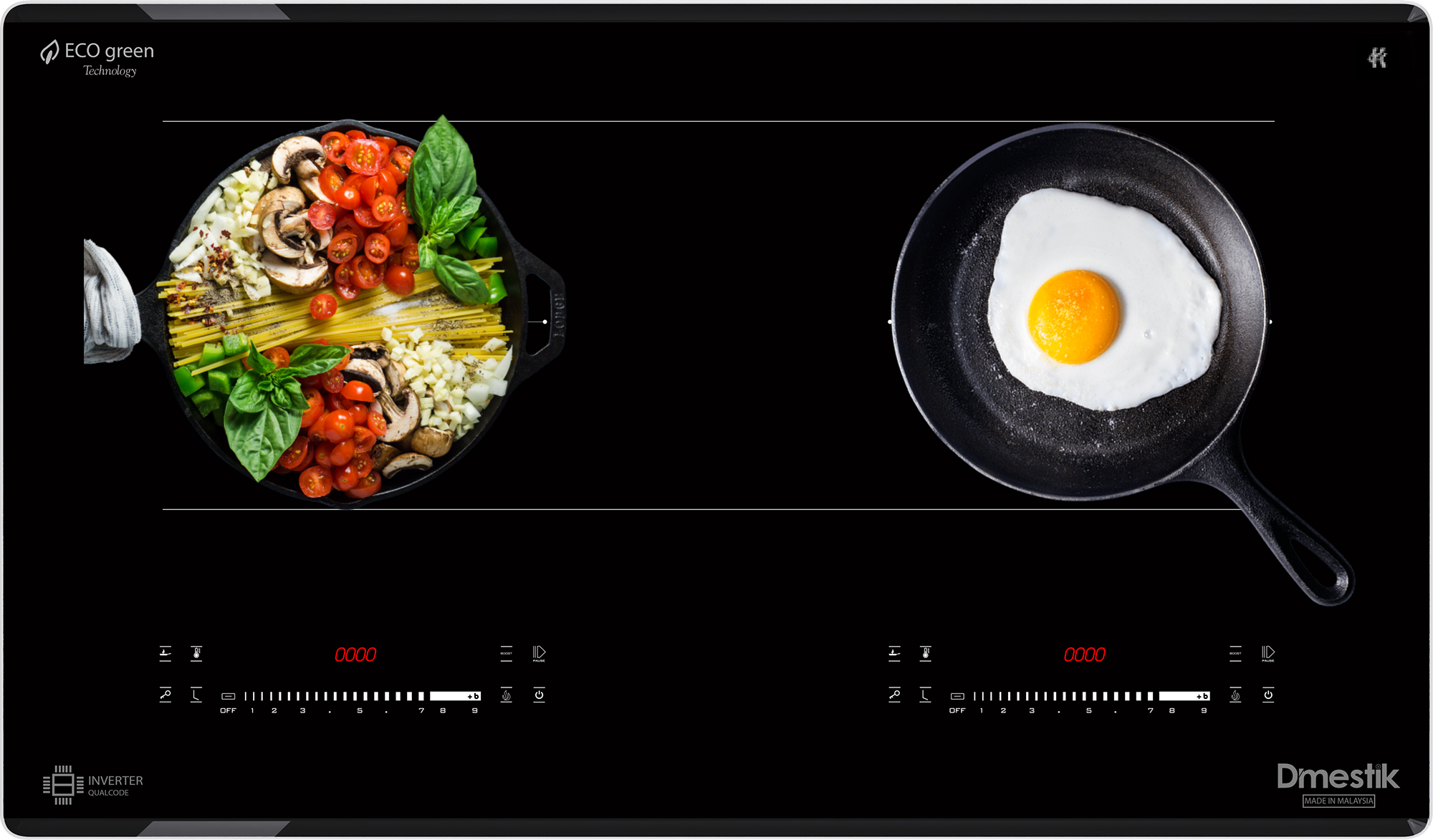 Bếp từ Dmestik ML999DKI được tích hợp chức năng tự nhận diện vùng nấu, khi ta đặt nồi lên 1 trong 2 vùng nấu sau đó ấn nút khởi động bếp sau thời gian 1-2 giây bếp sẽ tự động tìm vùng nấu đã có nồi, ta chỉ việc điều chỉnh mức công suất to nhỏ theo ý muốn mà không phải thao tác chọn vùng nấu như bếp thông thường. Công nghệ Inverter được áp dụng trên bếp từ Dmestik ML999DKI có khả năng phản ứng thay đổi công suất theo điều khiển ngay tức thì, khi người dùng điều chỉnh tăng giảm nhiệt độ đun nấu, bếp điều chỉnh thay đổi tức thì về mức nhiệt độ mong muốn.