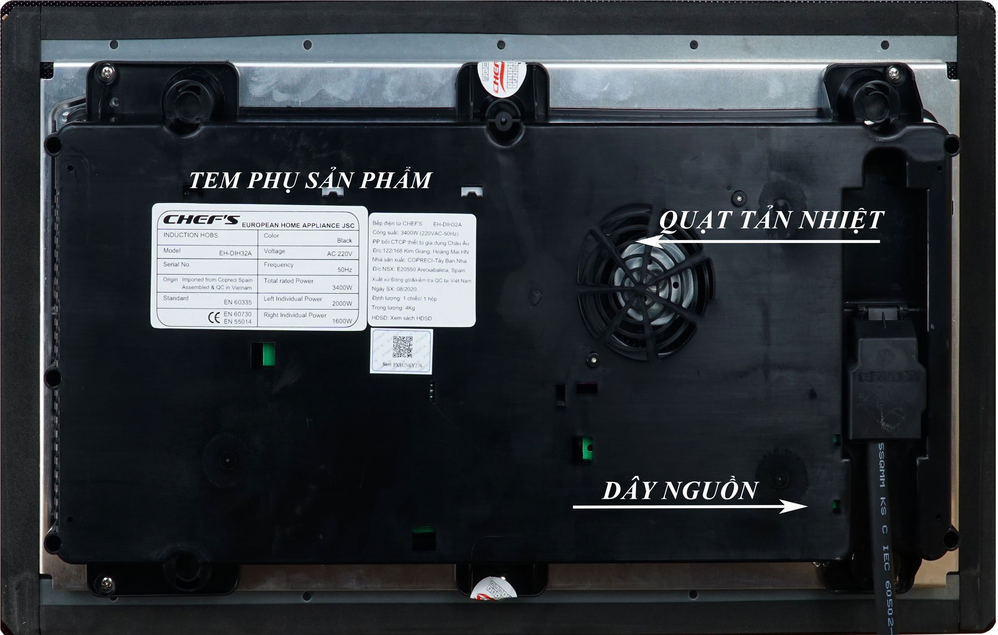Với tổng công suất 3600W, bếp sử dụng điện nối qua aptomat (CB).