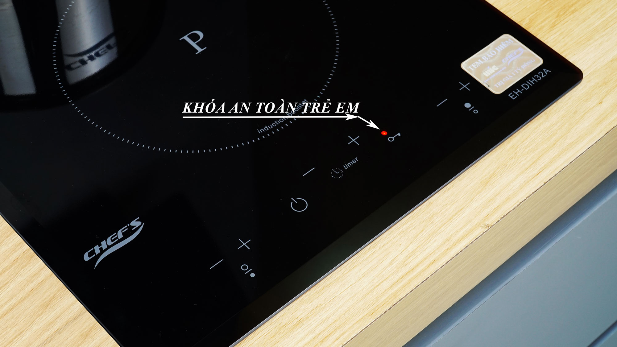 – Khoá bảng điều khiển khi kích hoạt sẽ vô hiệu hóa bảng điều khiển, đảm bảo trẻ nhỏ có tác động lên bếp cũng không gây nguy hiểm cho chúng, không làm thay đổi các cài đặt trước đó.