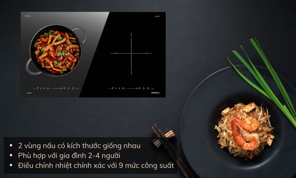 Bố trí 2 vùng nấu độc lập của mã bếp từ chất lượng chuẩn Đức này cho phép nấu nhiều món ăn cùng lúc, tiết kiệm thời gian. Mỗi vùng nấu của HC-I3732A có đường kính 195 mm với 9 mức gia nhiệt độc lập, khoảng cách vừa phải không gây cảm giác vướng víu, đáp ứng tốt nhu cầu nấu nướng đa dạng của hộ gia đình.