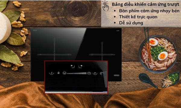 Bếp từ 536.61.787 trang bị bảng điều khiển cảm ứng chọn mượt mà dùng chung cho cả 2 vùng nấu, dễ dàng điều chỉnh 9 mức công suất gia nhiệt chỉ bằng các thao tác trượt kéo đơn giản.