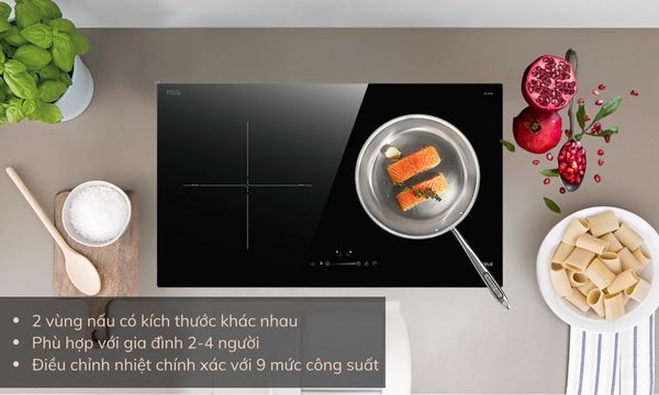 Mẫu bếp từ đôi này được thiết kế lắp âm thanh lịch, liền mạch với mặt bàn bếp, tạo vẻ đẹp đồng bộ và tinh tế cho tổng thể không gian nấu nướng.