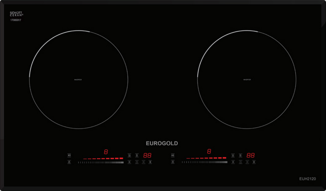 Bếp từ Eurogold EUH2120 là một trong những bếp từ đôi ĐẦU TIÊN trên thị trường Việt Nam tích hợp công nghệ Inverter trên 2 vùng nấu. Bếp được trang bị 2 vùng nấu điều khiển độc lập công suất không san tải.