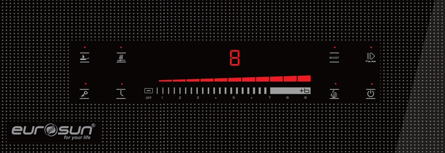 Bảng mạch điều khiển của sản phẩm tôi đang giới thiệu với bạn hôm nay sử dụng loại bảng điều khiển Controls Flex Touch với đặc trưng điều khiển rời cả 2 vùng nấu với chỉ một thao tác tăng giảm duy nhất là kéo Slider. Với lại bảng mạch này có khả năng chịu được đến 105 độ C và chỉ tiêu thụ có chưa đầy 0,5W/h rất tiết kiệm điện. Đồng thời nó cũng được lập trình nhiều tính năng nấu thông minh như: hâm nóng, chiên rán, rã đông, tạm dừng… tương lai Eurosun có thể sẽ có những bản nâng cấp khác.