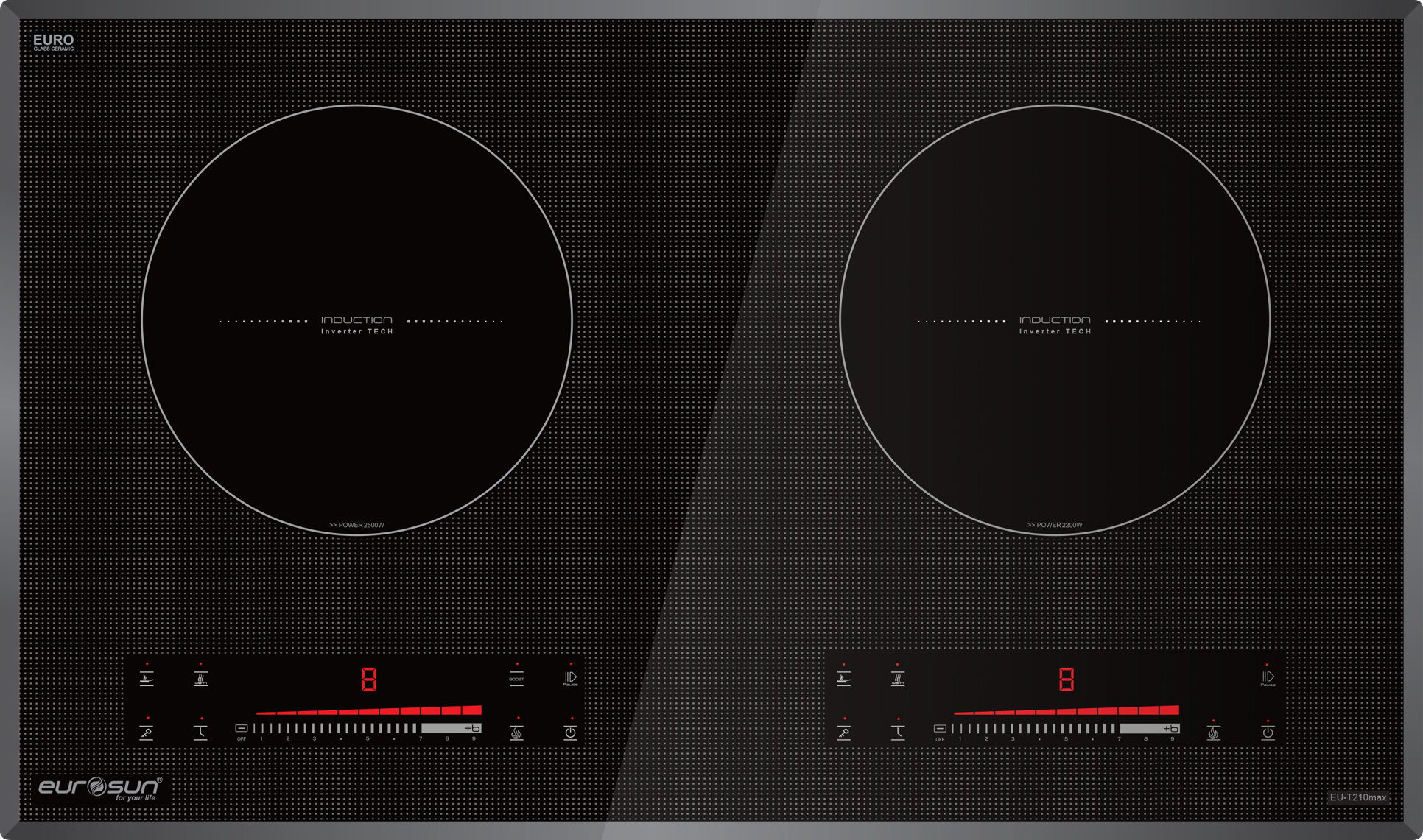 Bếp từ Eurosun EU-T210Max thiết kế sang trọng và tinh tế với các tính năng nổi trội, hứa hẹn sẽ là một người bạn đồng hành tin cậy cho các bữa ăn gia đình. Sản phẩm được sản xuất tại tập đoàn SUN FLAME INDUSTRIES SDN BHD trụ sở tại Malaysia.
