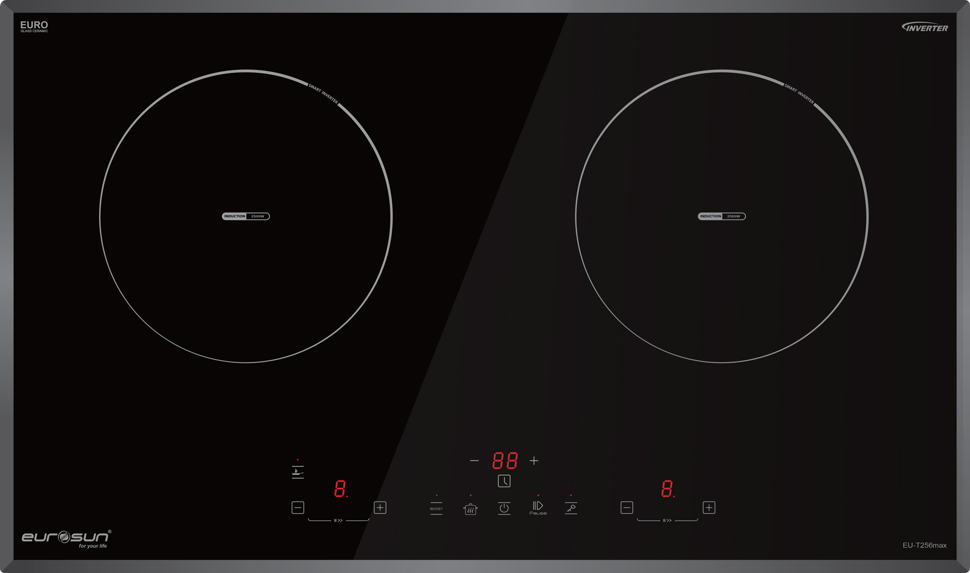 Bếp từ Eurosun EU-T256Max là một trong những bếp từ đôi ĐẦU TIÊN trên thị trường Việt Nam tích hợp công nghệ Inverter trên 2 vùng nấu. Bếp được trang bị 2 vùng nấu điều khiển độc lập công suất nhưng san tải 3600W nhờ IC công suất thế hệ mới
