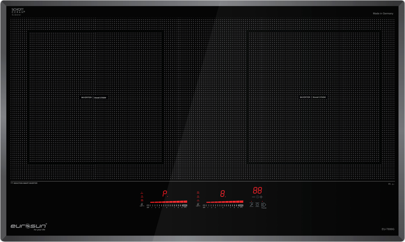 Bếp từ đôi Eurosun EU-T899G là một trong những bếp từ đôi ĐẦU TIÊN trên thị trường Việt Nam tích hợp công nghệ Inverter trên 2 vùng nấu với chế độ nấu Warming. Chế độ nấu Warming bản chất là công nghệ nấu ăn nhiệt độ thấp LowTemp của công ty EGO vốn đã tích hợp trên Cata Giga 600 BK và Giga 750 BK.