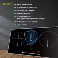 Với thương hiệu Faster, bảo vệ an toàn cho người sử dụng luôn là ưu tiên hàng đầu khi đem sản phẩm đến với khách hàng. Tính năng an toàn của bếp FS 836G được phát triển phù hợp cho gia đình Việt, bao gồm cả với gia đình có trẻ nhỏ và người già. Đặc biệt, nhờ tính năng chia sẻ công suất giữa 2 vùng nấu với nhau mà bếp có thể hoạt động trơn tru, tránh gây quá tải điện hoặc đoản mạch.