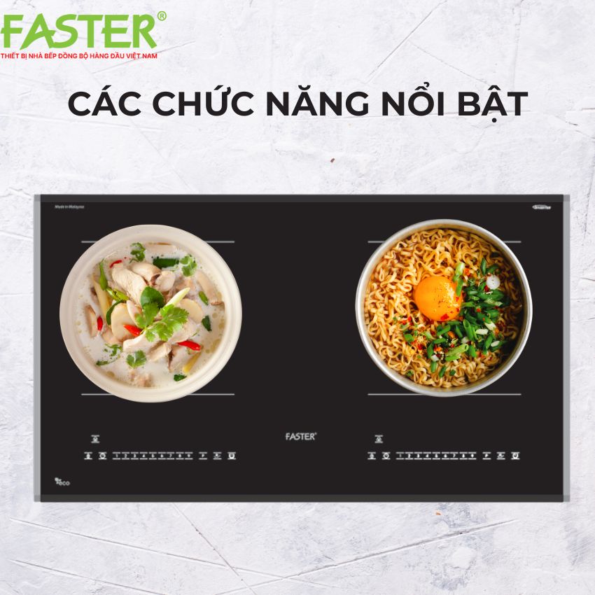 Bếp từ Faster FS 782I Pro gồm 2 vùng nấu với tổng công suất 4600W, vùng nấu từ trái có công suất là 1800W khi kích hoạt tính năng nấu nhanh Booster công suất lên tới 2300W, vùng nấu từ phải có công suất là 1800W khi kích hoạt tính năng nấu nhanh Booster công suất lên tới 2300W. Chỉ trong chốc lát sau khi kích hoạt tính năng này, nhiệt lượng trên vùng nấu từ tăng lên công suất tương đương với mức nhiệt lượng lớn nhất. Do đó, các món ăn được nấu chín nhanh hơn, tiết kiệm thời gian vào bếp cho chị em nội trợ. Chức năng Booster nấu siêu nhanh, tuy nhiên thời gian tối đa mặc định dùng chức năng này là 10 phút/lần tránh quá tải.