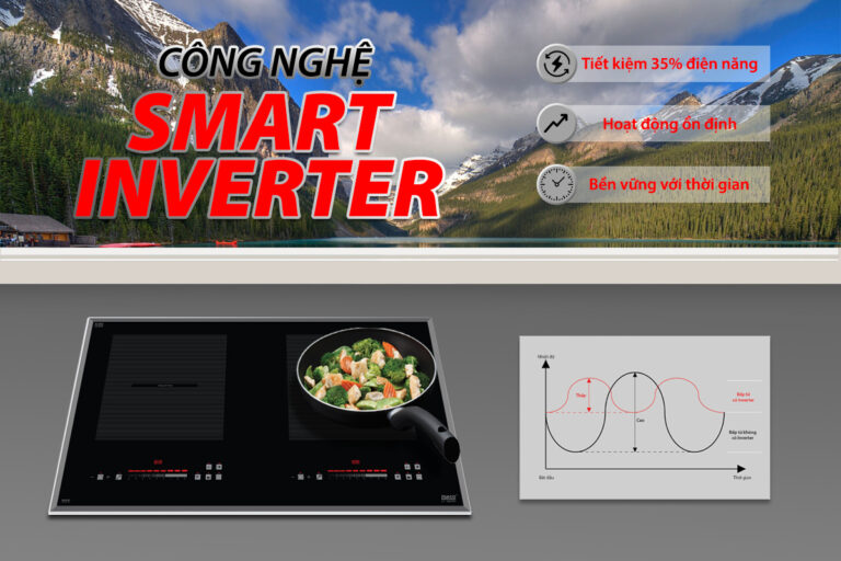 Bếp từ Lorca tích hợp công nghệ biến tần Smart Inverter tiết kiệm lên tới trên 35% điện năng tiêu thụ, giúp bếp đun nấu duy trì ổn định công suất khi đun nấu, với khả năng đun liu riu ở các mức công suất thấp, giữ cho bếp gia nhiệt duy trì ổn định, không bị đóng ngắt liên tục như các dòng bếp thông thường.