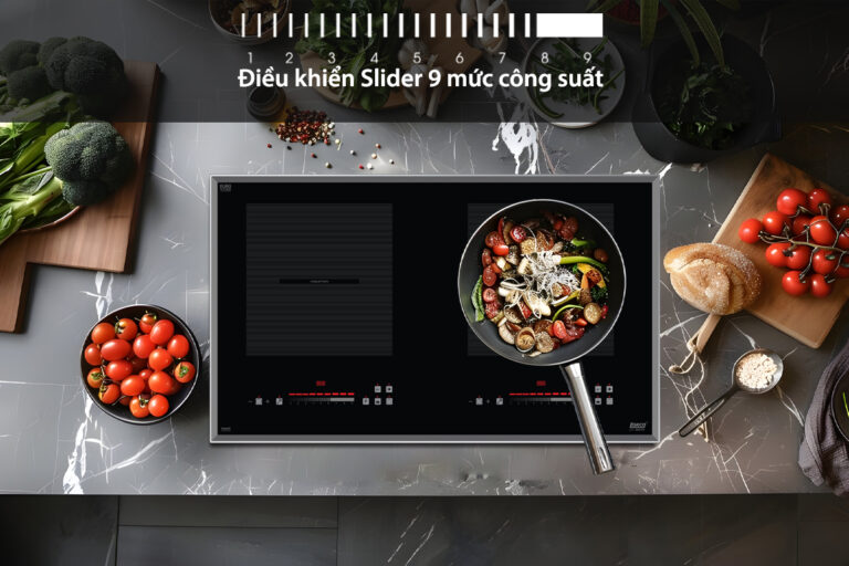 Bảng điều khiển phím cảm ứng trượt Slider siêu nhạy với 9 mức công suất độc lập cho 2 vùng nấu linh hoạt dễ dàng sử dụng, dễ thao tác với cả người cao tuổi và trẻ em