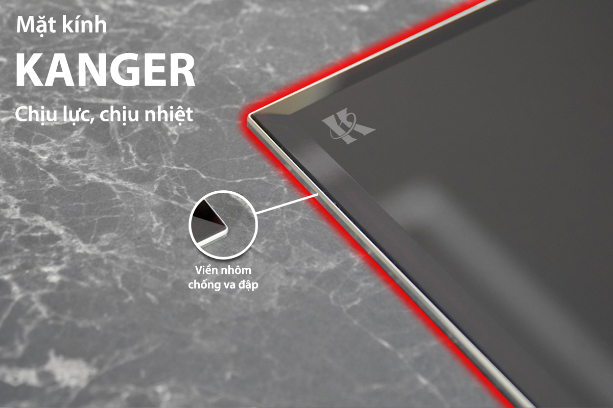 Bếp từ Lorca thiết kế 4 cạnh vát sang trọng và hiện đại. Mặt kính KANGER là một loại kính cao cấp chịu lực, chịu nhiệt, không chỉ bền, khó bị nứt vỡ trong quá trình sử dụng, có thể hoàn toàn yên tâm về độ sạch của mặt bếp vì đây là chất liệu khó bị bám bẩn, dễ lau chùi. Kính có thể chịu được nhiệt độ từ 600ºC đến 1000ºC.