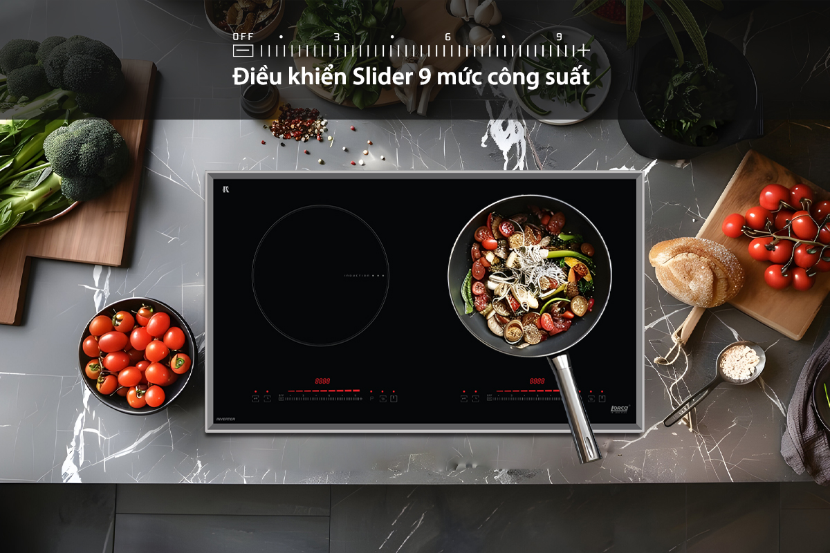 Bảng điều khiển phím cảm ứng trượt Slider siêu nhạy với 9 mức công suất độc lập cho 2 vùng nấu linh hoạt dễ dàng sử dụng, dễ thao tác với cả người cao tuổi và trẻ em