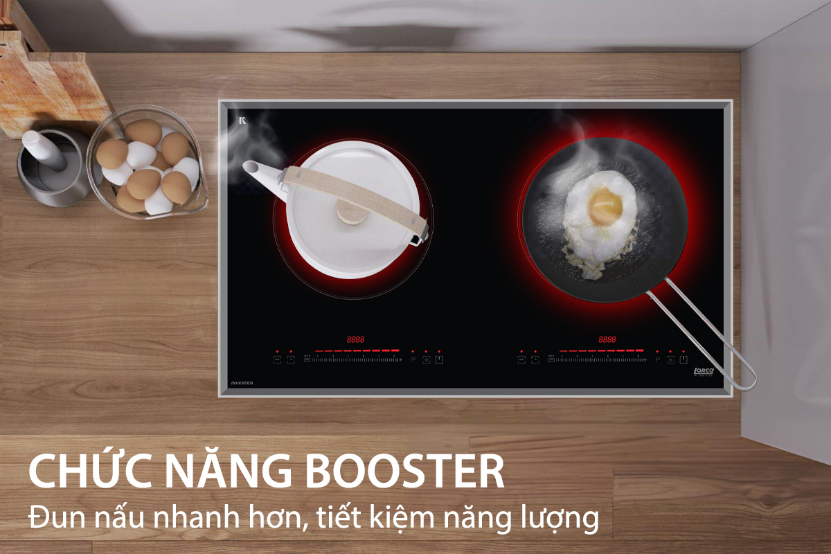 Bếp từ Lorca Booster có khả năng kích công suất lên cực đại lên đến 2400W giúp công việc đun nấu trở nên nhanh chóng khi cần thiết, nhưng vẫn đảm bảo an toàn hoạt động cho việc nấu nướng.