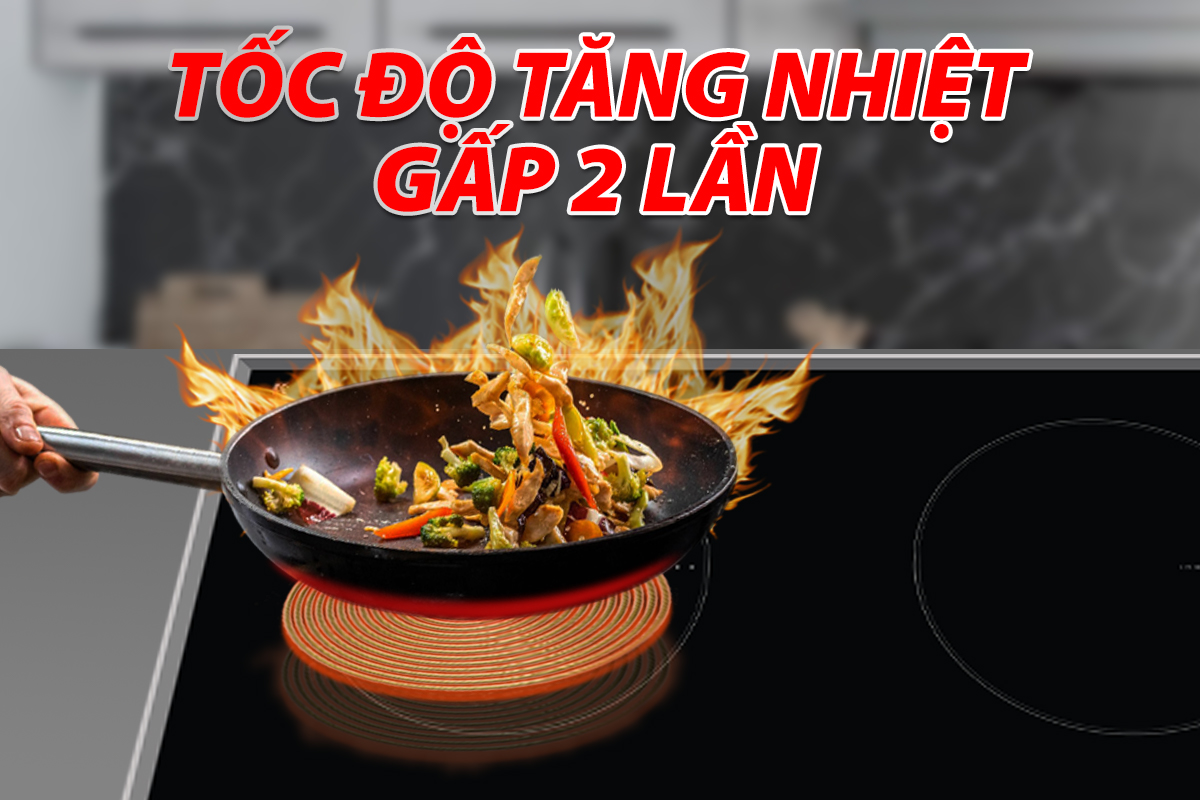 Với thiết kế mạch công suất lõi kép của bếp từ Lorca, bếp có khả năng đạt được mức công suất yêu cầu rất nhanh, kết quả test thử tại phòng thí nghiệm kỹ thuật của Lorca cho thấy, bếp Lorca có tốc độ tăng nhiệt cao gấp 2 lần so với bếp truyền thống.