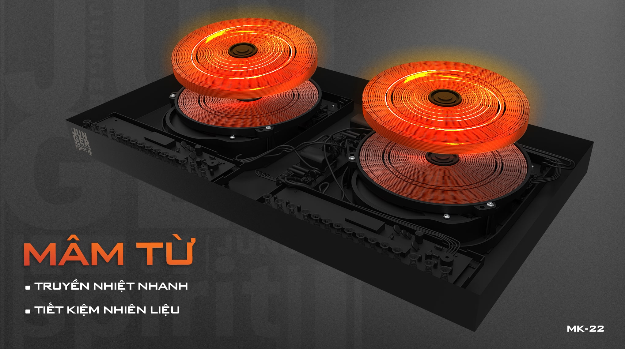 Điểm nổi bật của Junger MK-22 là được ứng dụng công nghệ Inverter hiện đại giúp điều chỉnh linh hoạt công suất và tần số từ trường, tối ưu hóa hiệu quả nấu nướng và tiết kiệm điện năng, đặc biệt khi sử dụng ở các mức công suất thấp.