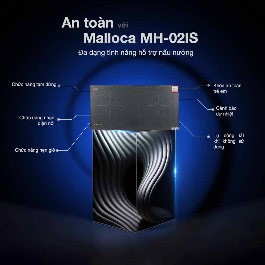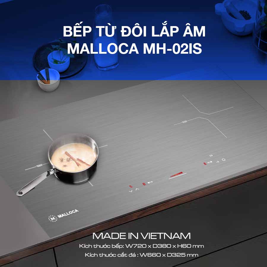 - Mặc dù là sản phẩm bếp Malloca lắp ráp tại Việt Nam nhưng với xuất xứ từ Tây Ban Nha, bếp từ Malloca MH-02IS hội tụ đầy đủ những ưu điểm cũng như tính năng nổi bật vốn có của hãng. Đây sẽ là sản phẩm đáng để bạn sở hữu cho căn bếp gia đình vì điểm cộng rất lớn đến từ thiết kế lẫn hiệu năng: