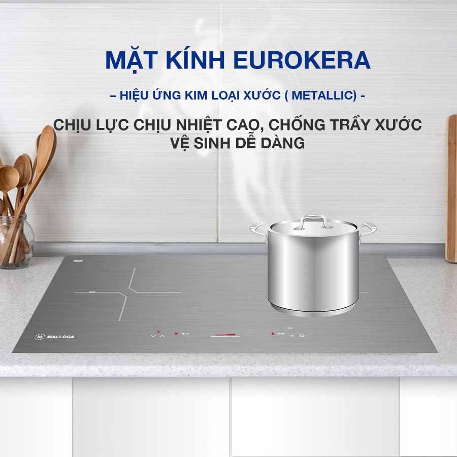 - Mặt kính Eurokera chịu lực, chịu nhiệt tốt: Bếp từ MH-02IS được trang bị kính Eurokera danh tiếng của Pháp. Loại kính này có ưu điểm là siêu bền, chịu được lực nặng và chịu nhiệt cao đến 700 độ C. Chính vì vậy bạn có thể yên tâm về độ bền của sản phẩm và thoải mái sử dụng bếp trong mọi hoàn cảnh khác nhau.