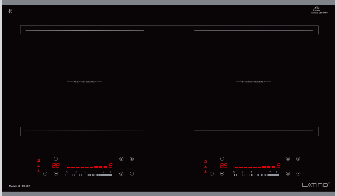 Bếp từ Latino LT-ML102 được tích hợp chức năng tự nhận diện vùng nấu, khi ta đặt nồi lên 1 trong 2 vùng nấu sau đó ấn nút khởi động bếp sau thời gian 1-2 giây bếp sẽ tự động tìm vùng nấu đã có nồi, ta chỉ việc điều chỉnh mức công suất to nhỏ theo ý muốn mà không phải thao tác chọn vùng nấu như bếp thông thường. Công nghệ Inverter được áp dụng trên bếp từ Latino LT-ML102 có khả năng phản ứng thay đổi công suất theo điều khiển ngay tức thì, khi người dùng điều chỉnh tăng giảm nhiệt độ đun nấu, bếp điều chỉnh thay đổi tức thì về mức nhiệt độ mong muốn.