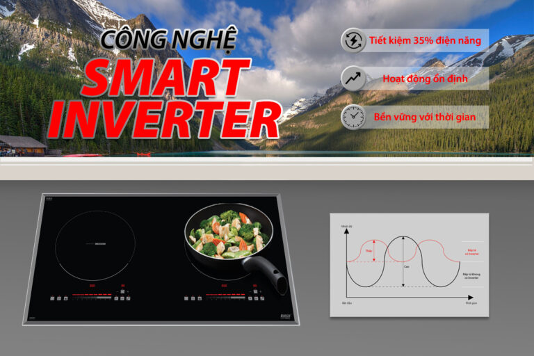 Bếp từ Lorca tích hợp công nghệ biến tần Smart Inverter tiết kiệm lên tới trên 35% điện năng tiêu thụ, giúp bếp đun nấu duy trì ổn định công suất khi đun nấu, với khả năng đun liu riu ở các mức công suất thấp, giữ cho bếp gia nhiệt duy trì ổn định, không bị đóng ngắt liên tục như các dòng bếp thông thường.