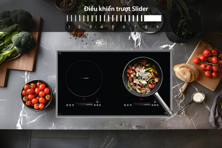 Bảng điều khiển phím cảm ứng trượt Slider siêu nhạy với 9 mức công suất độc lập cho 2 vùng nấu linh hoạt dễ dàng sử dụng, dễ thao tác với cả người cao tuổi và trẻ em
